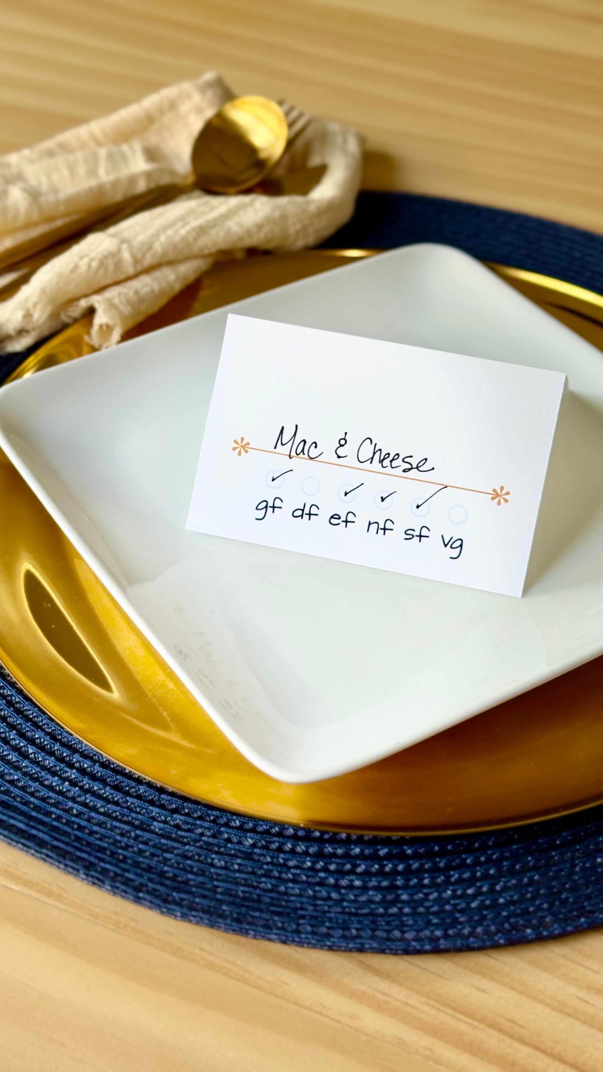 Casual Design- Elegant Food Allergy Tent Cards